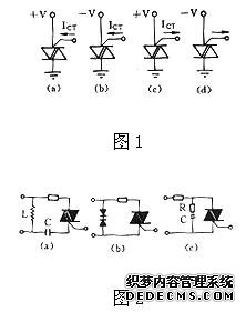 雙向可控硅是一個三端元件,但我們不再稱其兩極為陰陽極,而是稱作T1和T2極,G為控制極,其控制極上所加電壓無論為正向觸發(fā)脈沖或負向觸發(fā)脈沖均可使控制極導通,在圖1所示的四種條件下雙向可控硅均可被觸發(fā)導通,但是觸發(fā)靈敏度互不相同,即保證雙向可控硅能進入導通狀態(tài)的最小門極電流IGT是有區(qū)別的,其中(a)觸發(fā)靈敏度最高,(b)觸發(fā)靈敏度最低,為了保證觸發(fā)同時又要盡量限制門極電流,應選擇(c)或(d)的觸發(fā)方式。
